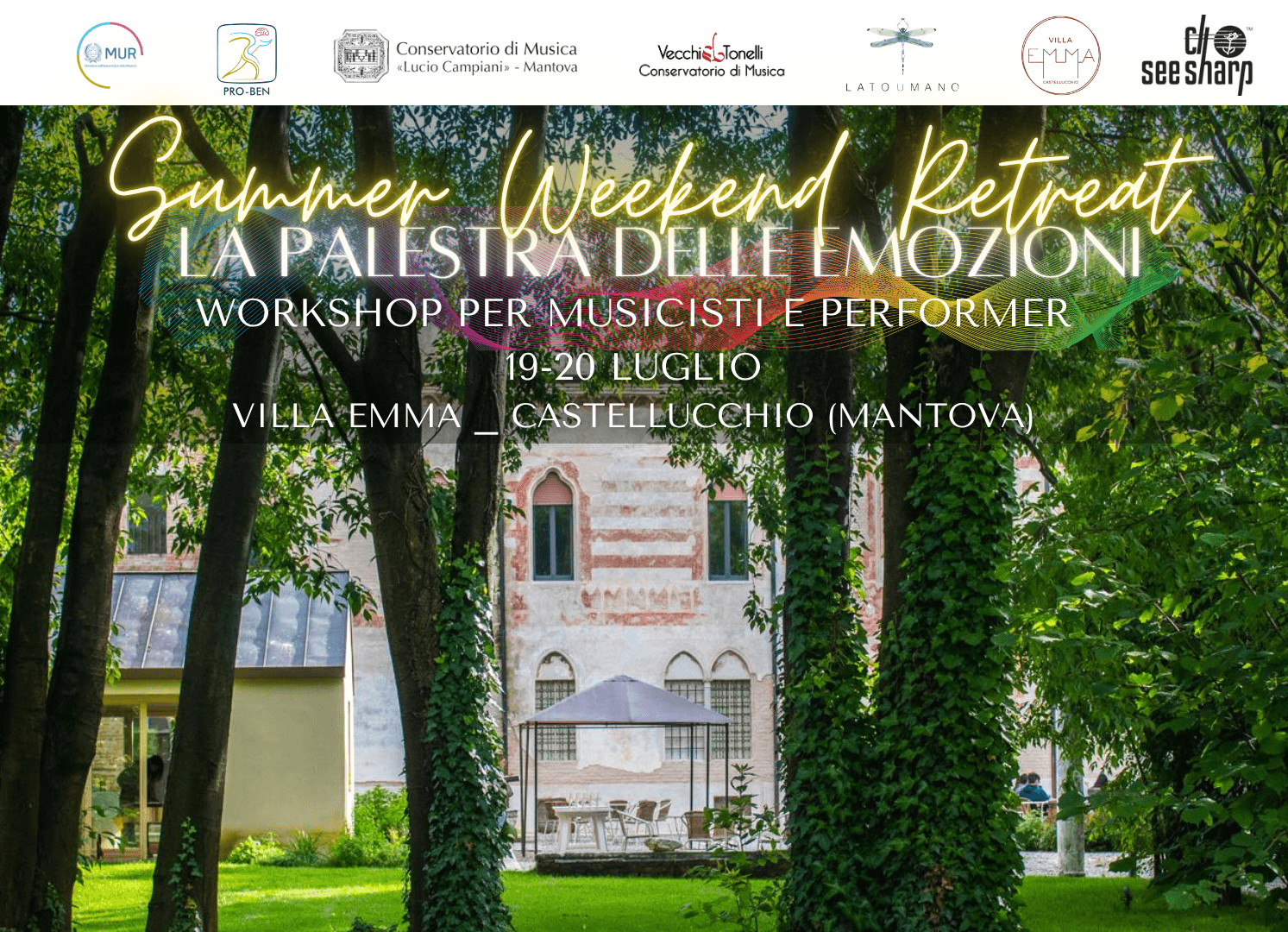Unisciti a noi il 19-20 Luglio a Villa Emma, Castellucchio (Mantova). Il retreat è guidato dalla rinomata pianista e performing coach Gloria Campaner. Scopri come gestire e valorizzare le emozioni per migliorare la tua performance artistica e personale.